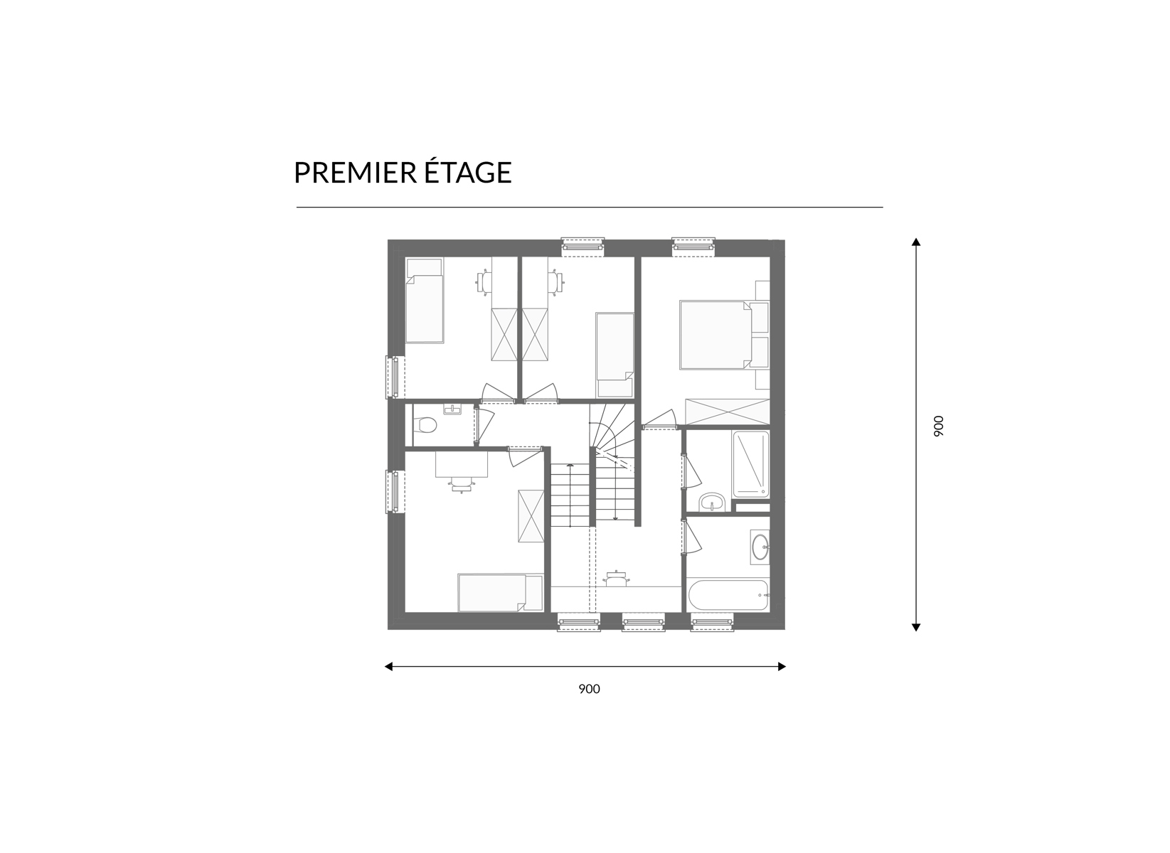 Étage : 4 chambres confortables, Salle de bain moderne, Salle de douche supplémentaire, WC indépendant.