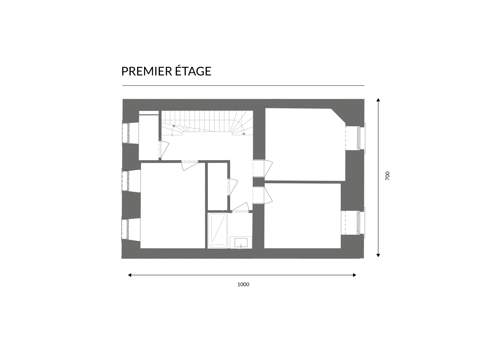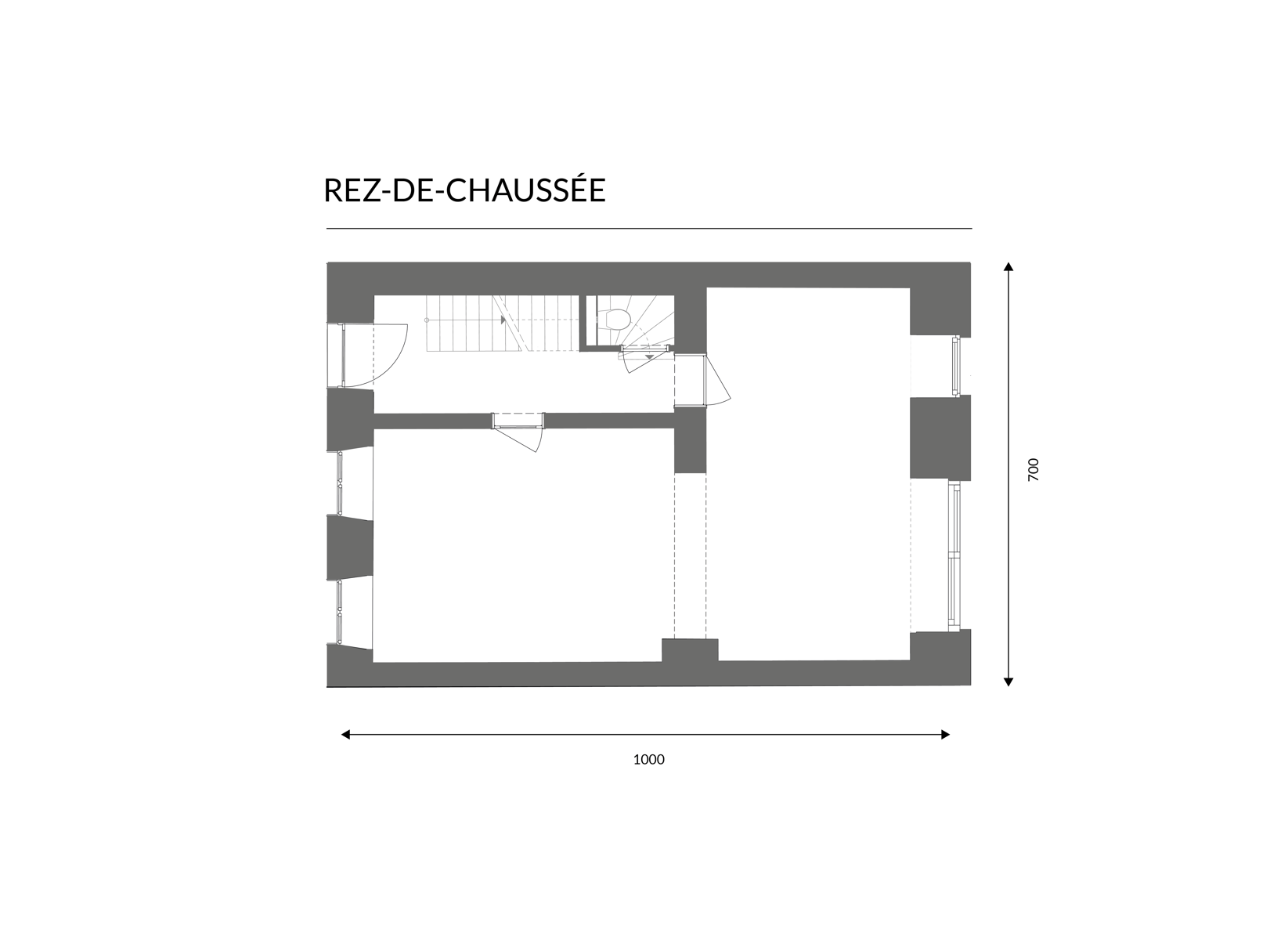 Cette maison permet la création de : Espaces d’accueil ou de consultation, Bureaux privatifs, Salle de réunion, Espace d’attente ou de détente, Zone de stockage ou archives.